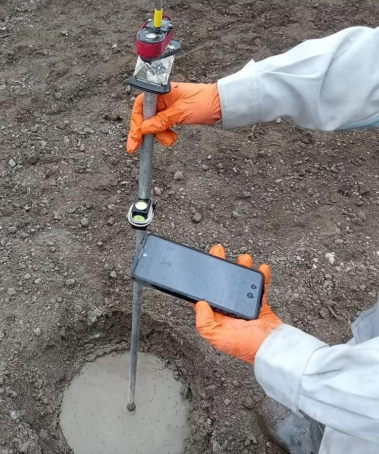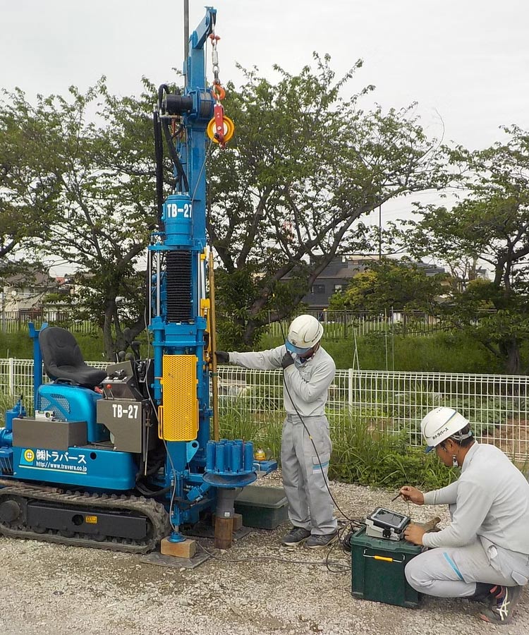 ボーリング孔を使用し、磁気反応から既存杭の長さを測定します。